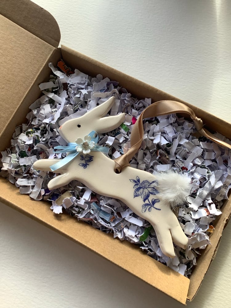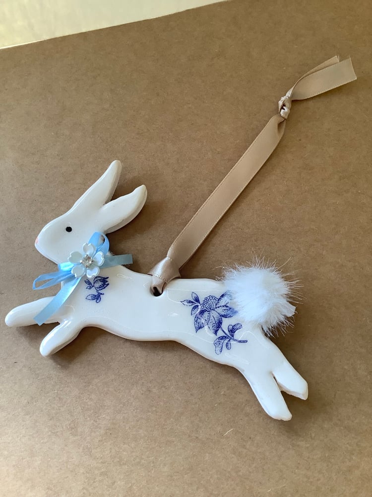 Rabbit ceramic hanging decoration light blue